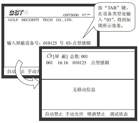 d.按“確認(rèn)”鍵存儲,如該設(shè)備未曾被屏蔽,屏幕的屏蔽信息中將增加該設(shè)備,否則在顯示屏上提示輸入錯誤。
