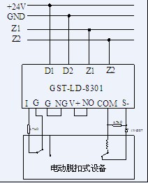 GST-LD-8301輸入輸出模塊現場接線模擬圖: