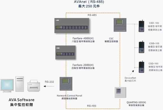 FANFARE-2000四區(qū)型極早期煙霧偵測(cè)主機(jī),可以通過(guò)輸入模塊接入火災(zāi)自動(dòng)報(bào)警報(bào)警控制器;也可以全部聯(lián)網(wǎng),并由AVA系統(tǒng)管理軟件對(duì)整個(gè)系統(tǒng)進(jìn)行設(shè)置和監(jiān)控。AVA系統(tǒng)管理軟件安裝在消防控制室的計(jì)算機(jī)上,用戶(hù)可以通過(guò)它對(duì)整個(gè)探測(cè)系統(tǒng)的所有性能進(jìn)行設(shè)置、調(diào)試和監(jiān)控。